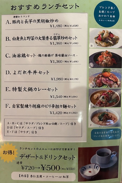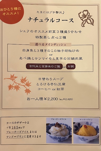 - A 週替わりランチ 1,628円~1,790円 ※サラダ/ブレンド米またはお粥/スープ付き